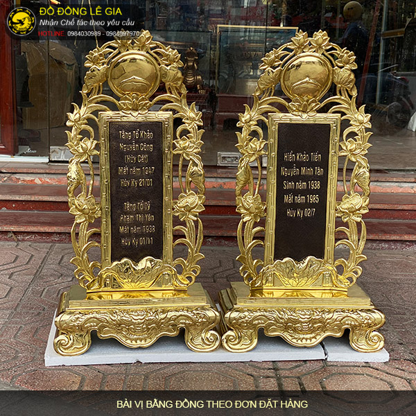 Bài vị bằng đồng là vật thờ cúng linh thiêng, mang nhiều ý nghĩa tâm linh cao quý. Đây là một trong những nét đẹp trong văn hóa thờ cúng của người Việt, được lưu truyền qua bao thế hệ. Đồ đồng Lê Gia nhận đúc bài vị bằng đồng, đồ thờ đồng chế tác theo yêu cầu giúp gia chủ lập đúng phong thủy tâm linh.
