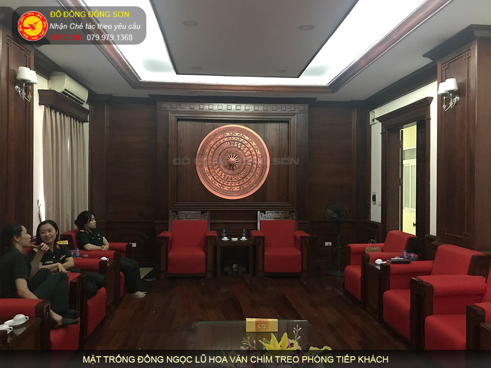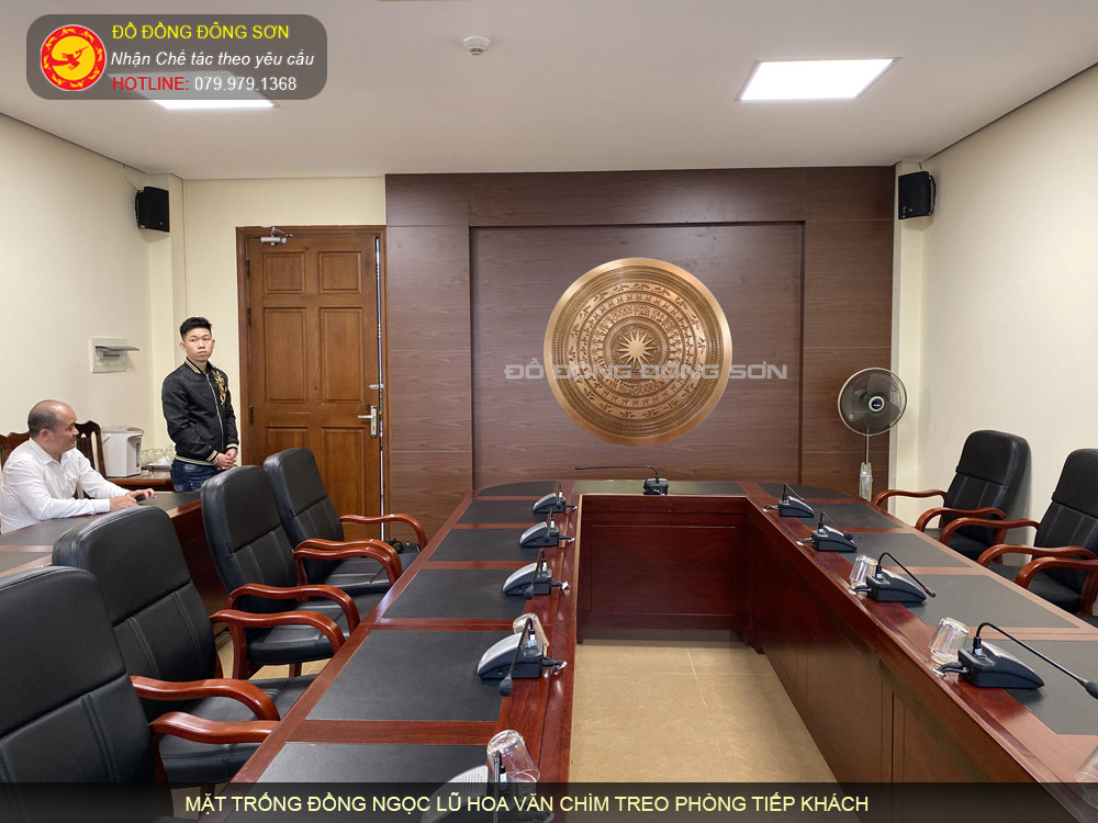 Mặt trống đồng hoa văn chìm trang trí phòng họp lớn, hội trường