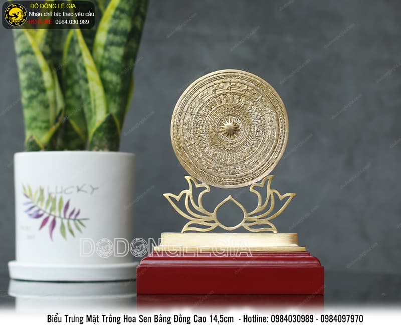 1. Mô tả Biểu trưng Mặt Trống Hoa Sen để bàn cao 14,5cm