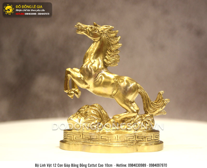 Bộ tượng 12 con giáp bằng đồng mạ vàng 24k được đúc thủ công tại xưởng đồ đồng Lê Gia. Bộ linh vật gồm đầy đủ 12 con giáp: Tý, Sửu, Dần, Mão, Thìn, Tỵ, Ngọ, Mùi, Thân, Dậu, Tuất, Hợi – Chuột, Trâu, Hổ, Mèo, Rồng, Rắn, Ngựa, Dê, Khỉ, Gà, Chó, Lợn.