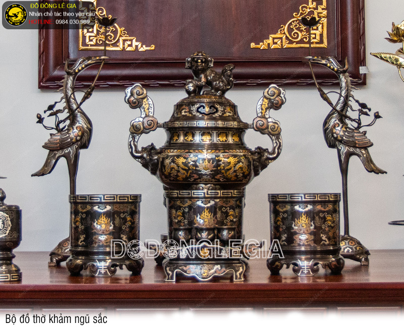 Bộ đồ thờ bằng đồng đỏ khảm ngũ sắc đủ kích thước