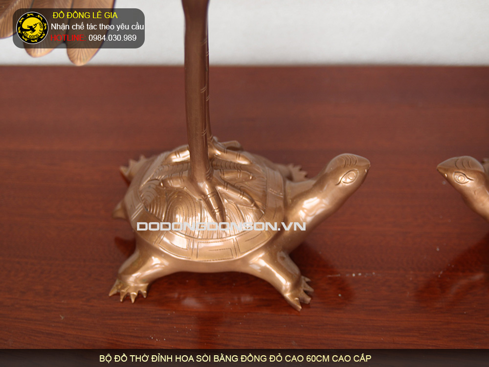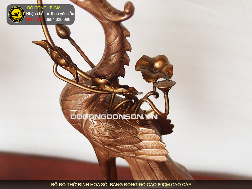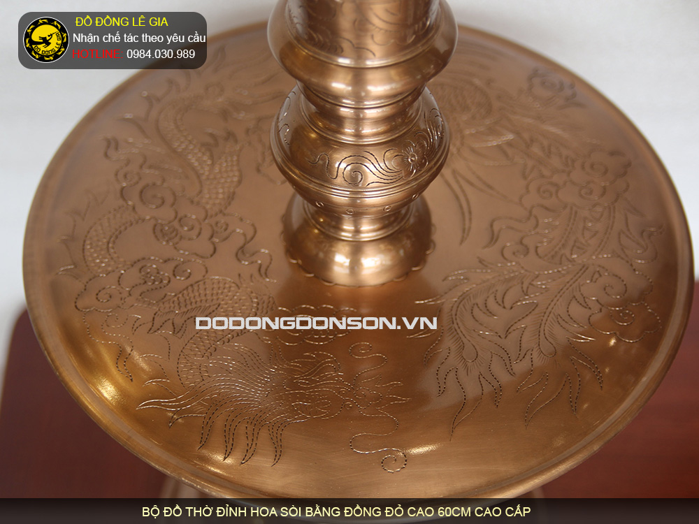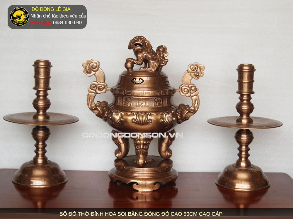 Tên sản phẩm: Bộ đồ thờ đỉnh hoa sòi bằng đồng đỏ cao 60cm cao cấp