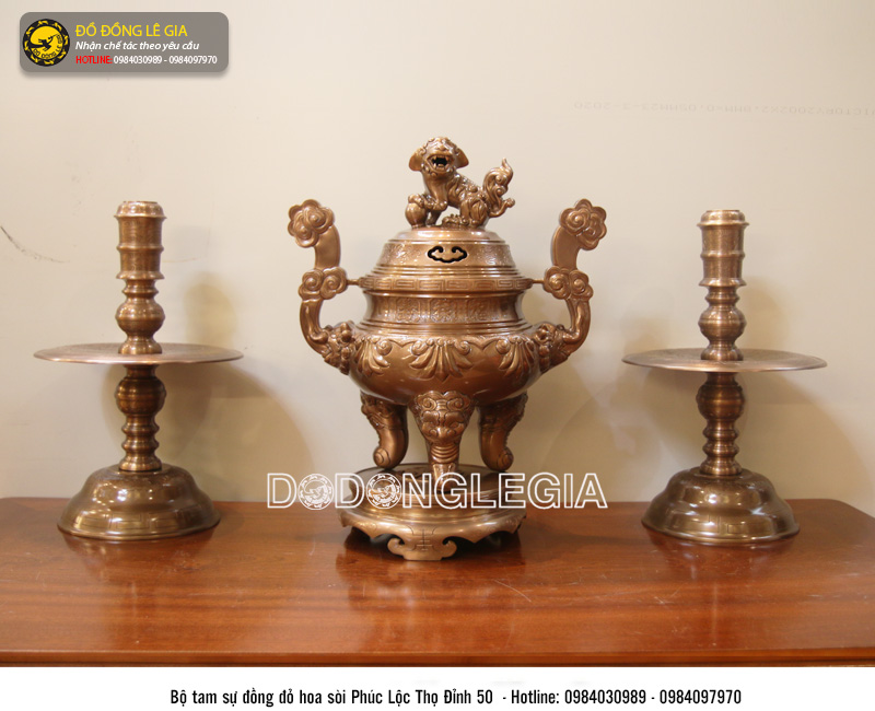 | Phù hợp ban thờ: | Bộ ngũ sự đỉnh 50cm được thiết kế sử dụng trên bàn thờ từ 1m55 tới 1m76. |
