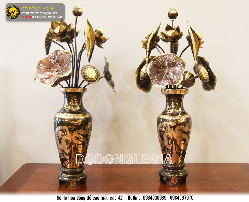 Bộ đồ thờ có thể đi kèm phù hợp là đôi lọ hoa cao 42 hoa văn rồng phượng