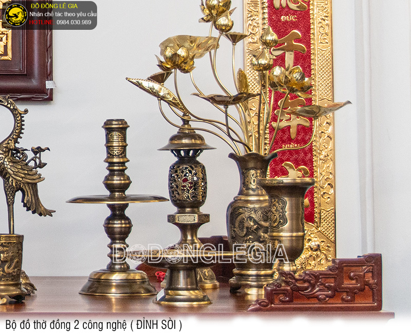 Bộ Đồ thờ hai công nghệ bằng đồng đỉnh sòi