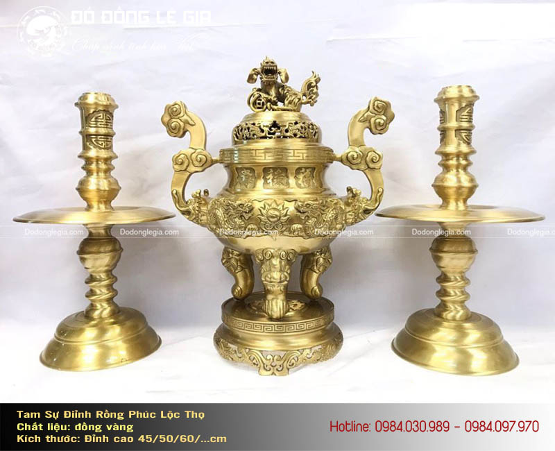 Bộ ngũ sự bằng đồng được thiết kế với các kích thước từ nhỏ tới lớn, phù hợp với mọi không gian thờ cúng.
