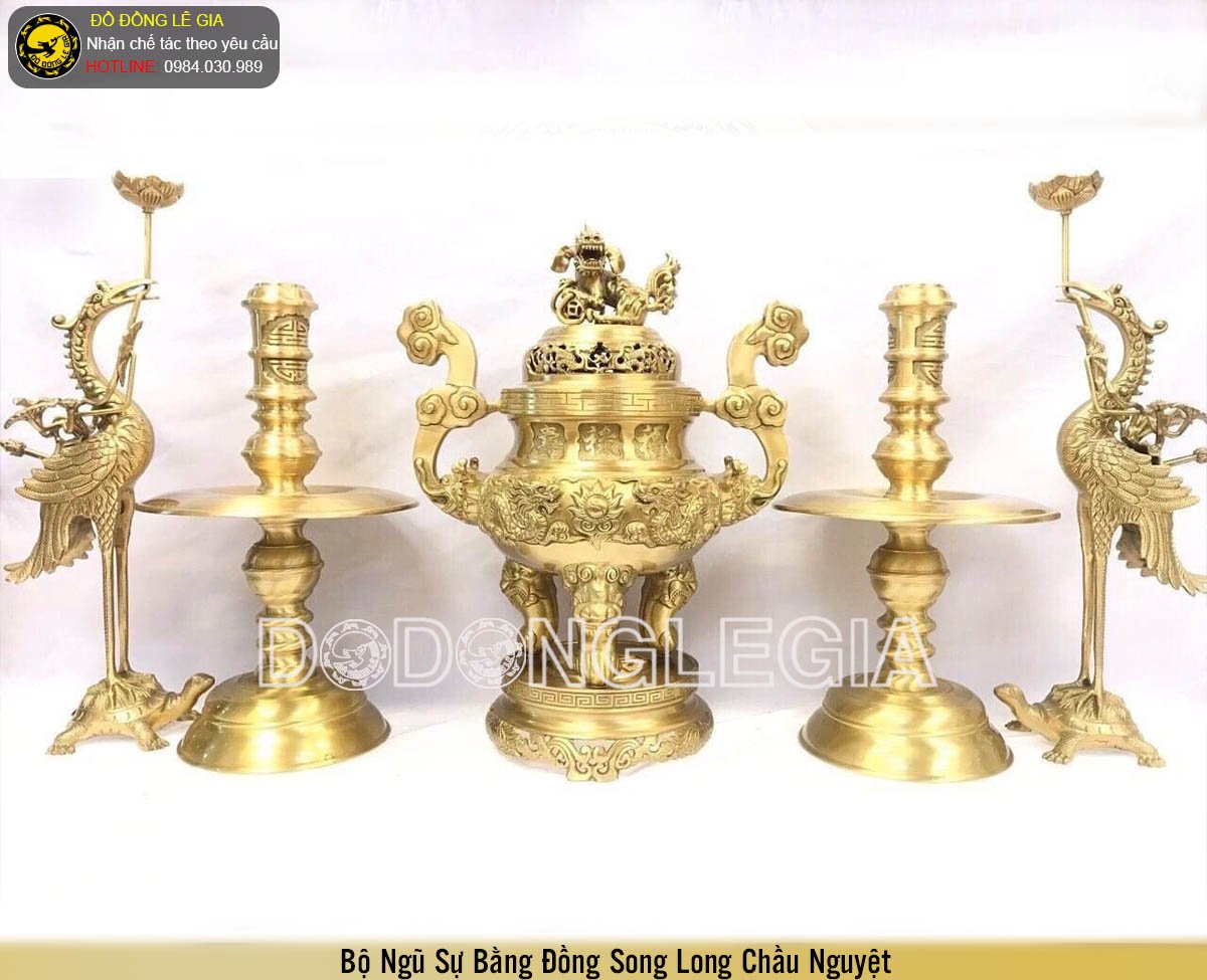Bộ ngũ sự bằng đồng là bộ sản phẩm bao gồm : 1 đỉnh đồng cùng với đôi hạc và đôi chân nến. Đây là một trong những cách kết hợp truyền thống, được sử dụng rất nhiều tại các hộ gia đình hiện nay.