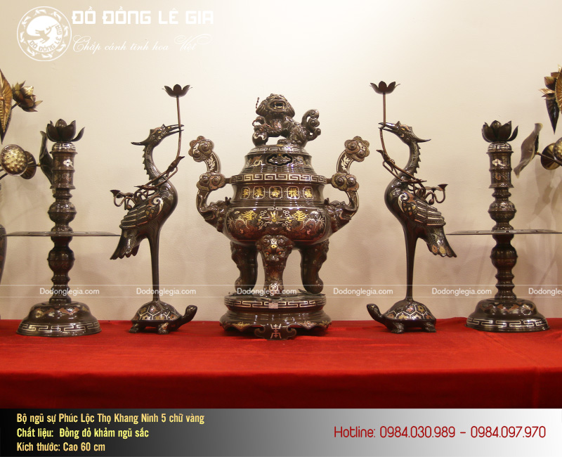Khảm ngũ sắc là sản phẩm được khảm 5 màu, 5 loại kim khí là vàng, bạc, đồng đỏ, đồng xanh và đồng đen. Bộ ngũ sự khảm ngũ sắc mà chúng tôi giới thiệu ở đây có những điểm nổi bật như sau: