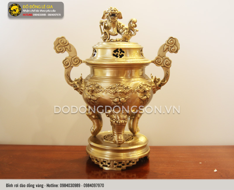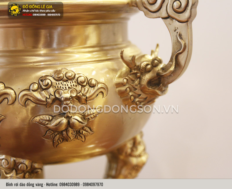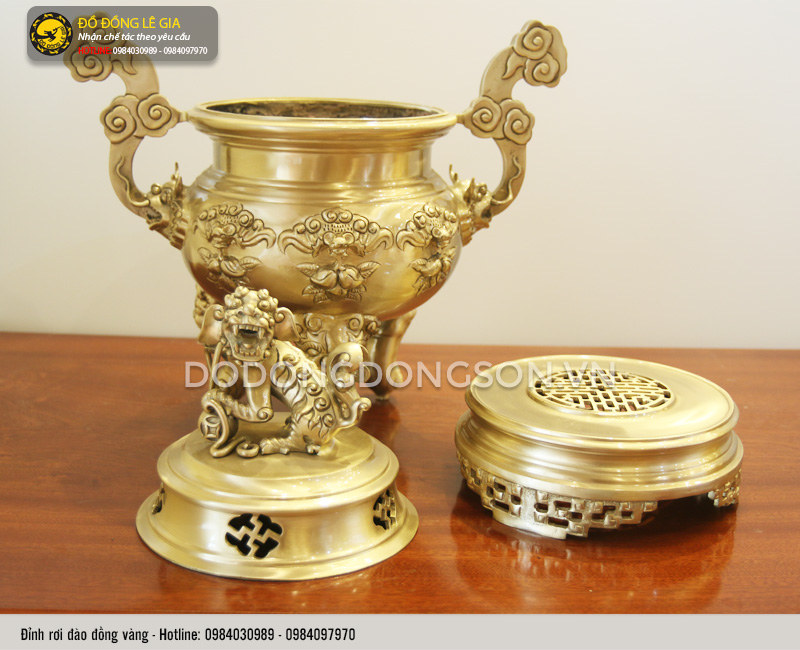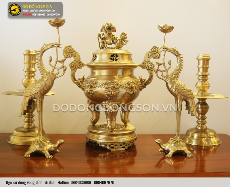 Được chế tác bằng tất cả cái tâm và cái tầm của những nghệ nhân dày dặn kinh nghiệm của xưởng đồ đồng Lê Gia. Từng đường nét, hoạ tiết trang trí trên các sản phẩm được chau chuốt một cách tỉ mỉ, cẩn thận. Kết hợp với đó là việc lựa chọn sử dụng chất liệu đồng vàng cao cấp. Bề mặt sản phẩm có màu vàng tươi sáng lại được phủ bóng. Từ đó cho ra đời bộ sản phẩm đẹp, tinh xảo, sang trọng, lại có độ bền vượt trội, hạn chế tối đa sự tác động của môi trường.