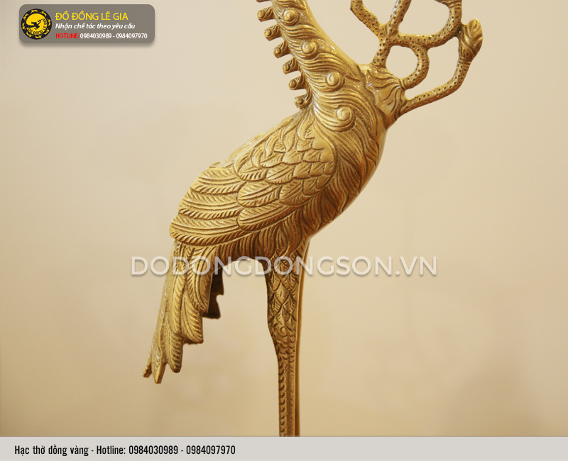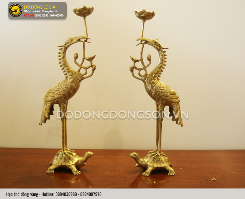 Đôi hạc: Hạc là biểu tượng của sự trường thọ, may mắn, khát vọng trường tồn. Rùa đảm bảo cho gia đình có sự liên kết chặt chẽ, lâu bền. Hạc đứng trên lưng rùa là sự kết hợp hài hòa, gắn kết giữa trời đất, giữa hai thái cực âm dương. Và còn hàm ý về tinh thần đoàn kết, giúp đỡ lẫn nhau vượt qua khó khăn. Hạc đứng trên lưng rùa ngậm cành hoa sen tượng trưng cho sự trường thọ, vươn lên, hướng đến những gì cao quý, tốt đẹp nhất.
