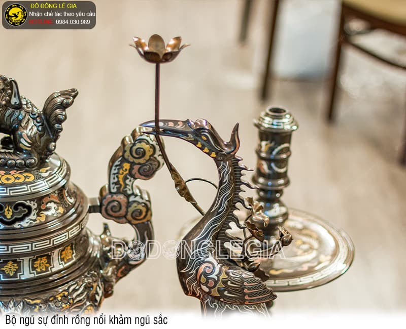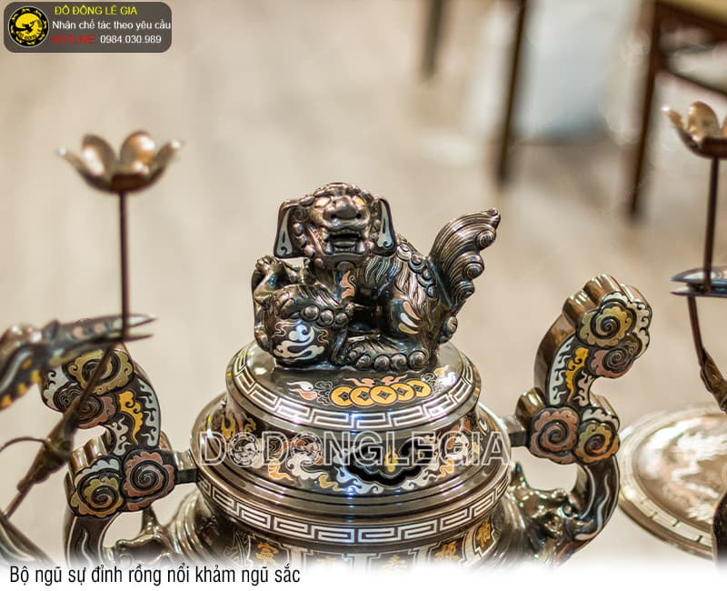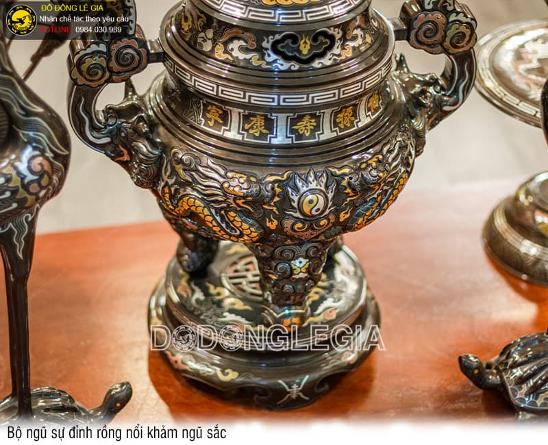 | Tên sản phẩm: | Bộ Ngũ Sự Đỉnh Rồng Nổi khảm ngũ sắc |