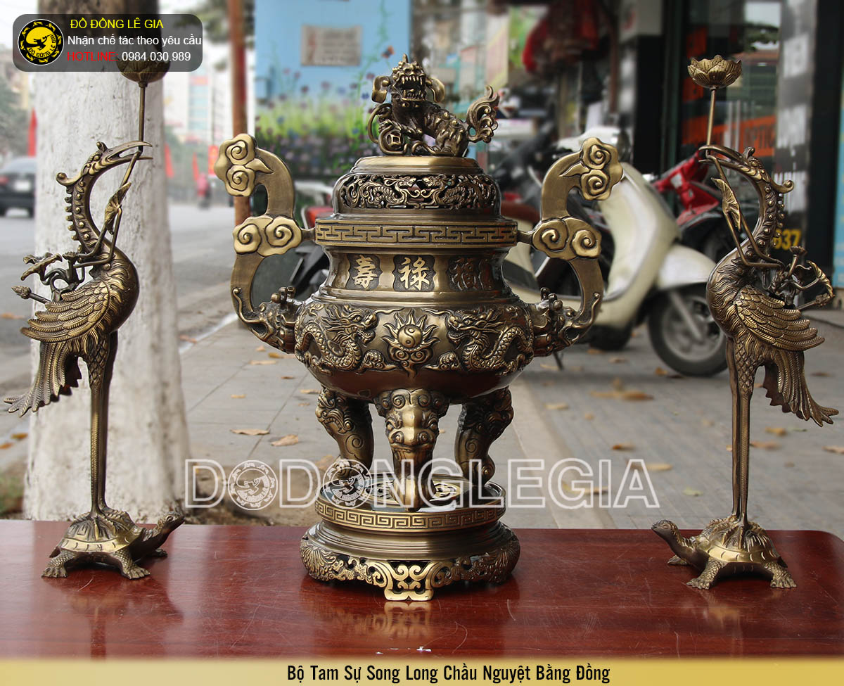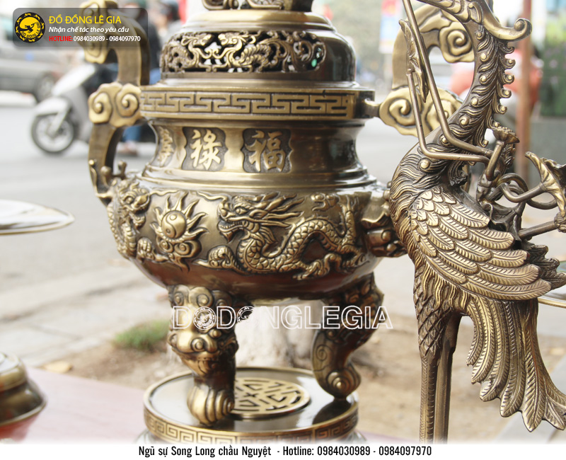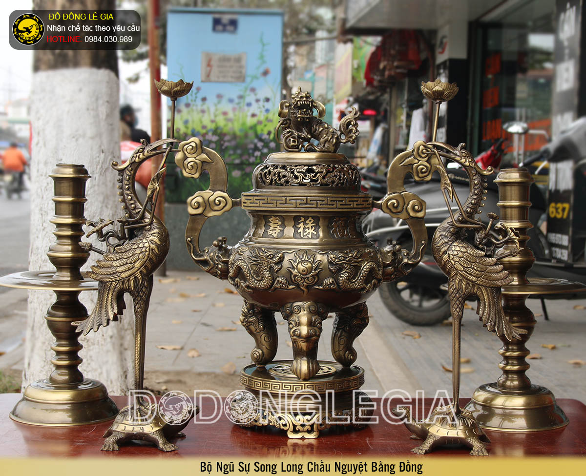 | Tên sản phẩm: | Bộ ngũ sự đỉnh đồng Rồng Phượng hai công nghệ |