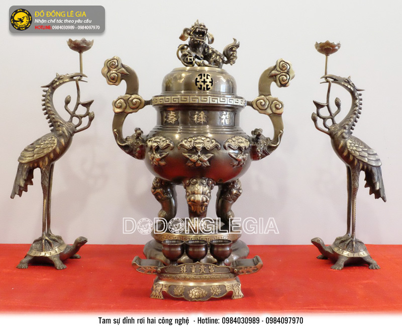 Bộ tam sự bằng đồng là bộ sản phẩm bao gồm : 1 đỉnh đồng cùng với đôi hạc hoặc đôi chân nến. Đây là một trong những cách kết hợp truyền thống, được sử dụng rất nhiều tại các hộ gia đình hiện nay.