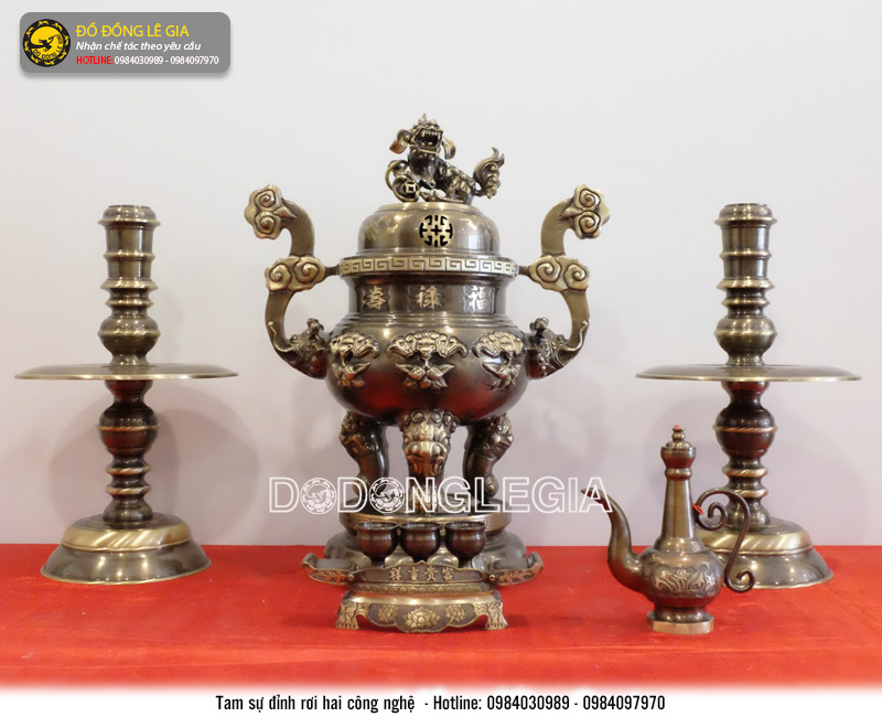 Bộ tam sự bằng đồng được thiết kế với các kích thước từ nhỏ tới lớn, phù hợp với mọi không gian thờ cúng của quý khách.