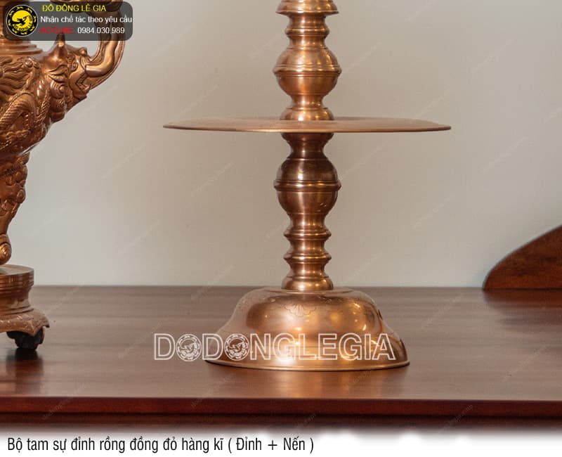| Tên sản phẩm: | Bộ Tam Sự Đỉnh Rồng đồng đỏ hàng kĩ (Đỉnh và Nến) |