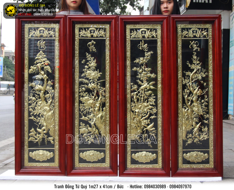 Bức tranh với nội dung độc đáo thường được gia chủ lựa chọn phổ biến là Bộ tranh tứ quý bằng đồng cao cấp của thương hiệu Đồ đồng Lê Gia.