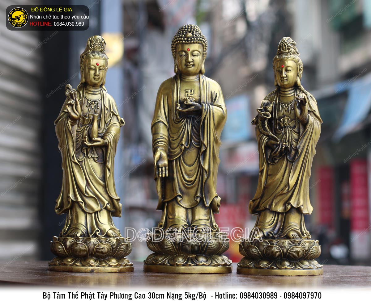 | Tên sản phẩm: | Bộ tượng đồng Tâm Thế Phật Tây Phương cao 30cm nặng 5kg |