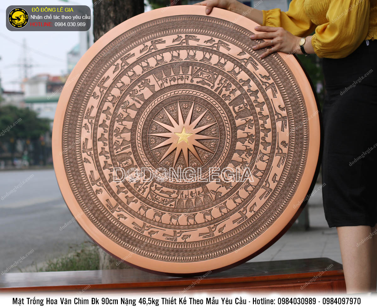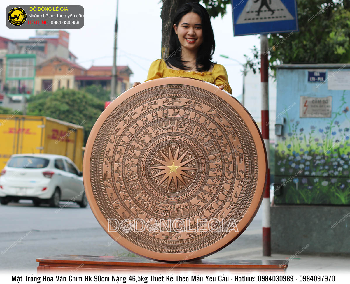 Với tiêu chí chuyên sản xuất và cung cấp các mặt hàng thủ công đồng mỹ nghệ cao cấp. Lê Gia luôn khắt khe và kiểm duyệt từng sản phẩm trước khi tới tay khách hàng nhằm đem tới cho khách hàng những sản phẩm chất lượng, thẩm mỹ, tinh xảo đến từng chi tiết. Vừa qua, chúng tôi đã hoàn thiện mẫu mặt trống đồng hoa văn chìm D90 theo yêu cầu cho khách hàng Quảng Ngãi