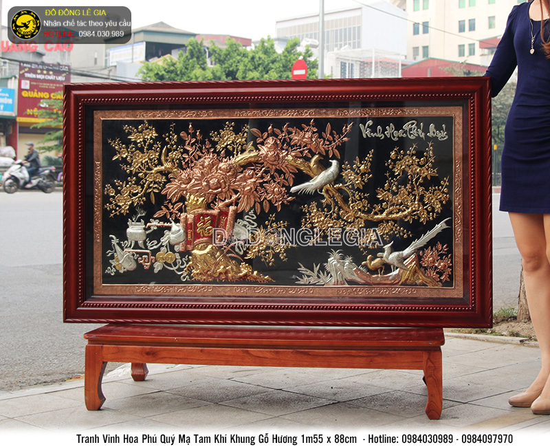 Tranh đồng Vinh hoa phú quý mạ tam khí hoàn thiện theo yêu cầu