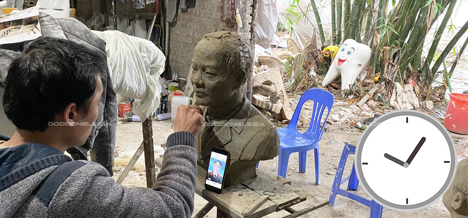 Tượng chân dung bằng đồng là một sản phẩm mỹ nghệ rất đặc trưng và cần phải có đầy đủ thời gian để hoàn thiện sao cho chân thực nhất (dao động từ 25-30 ngày). Chủ yếu sẽ tốn nhiều thời gian nhất ở giai đoạn chế tác mẫu từ mẫu quý khách gửi đến ra khuôn đất, composite.