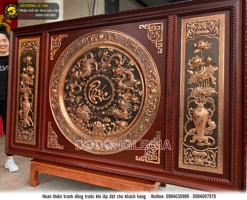 Toàn bộ sản phẩm tranh đồng cho đền thờ được Lê Gia chế tác sản xuất thủ công 100% bằng nguyên liệu đồng thanh khiết được nhập khẩu từ Hàn Quốc. Với kinh nghiệm lâu năm chúng tôi luôn cam kết nhận thi công tranh đồng treo đền thờ với chất lượng hàng đầu giá tốt nhất.