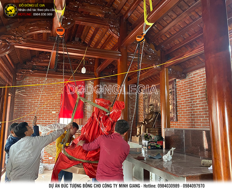 Đối với những bức tượng khổ lớn, Lê Gia đều có các phương tiện, máy móc hiện đại để có thể an vị tượng đồng một cách an toàn.