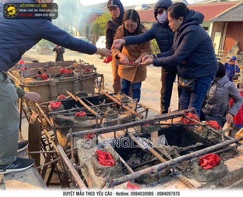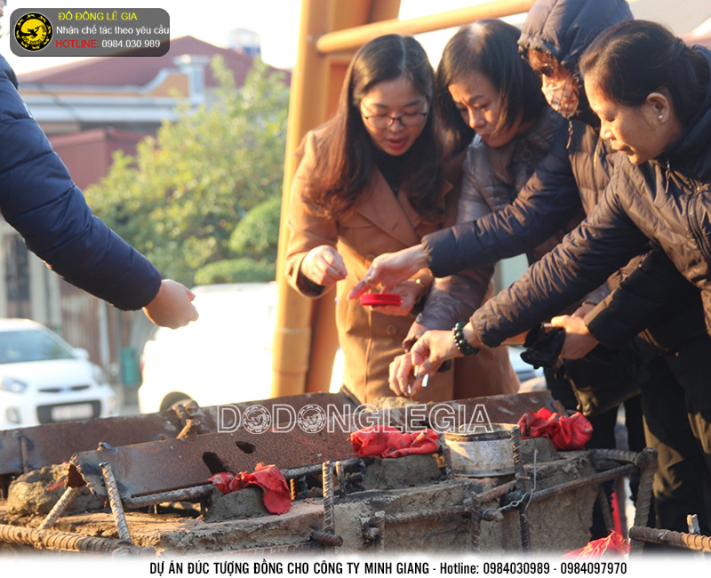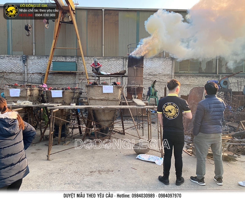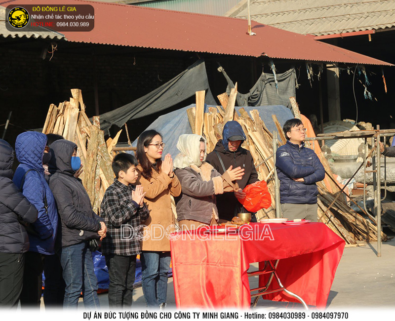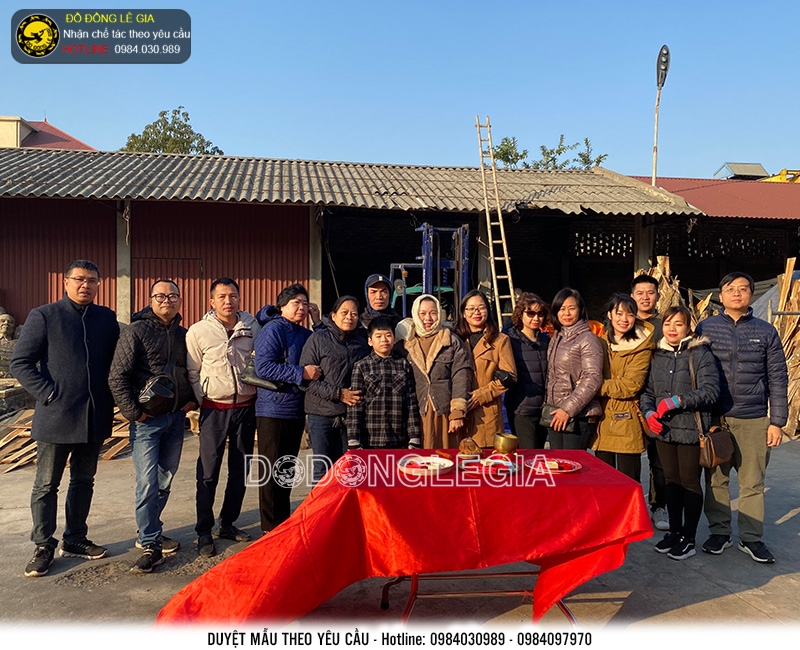 Về dự buổi lễ đúc đồng, có đầy đủ các thành viên của công ty và gia đình cùng một số nghệ nhân làng nghề và đông đảo các anh em thợ đúc. Mọi quá trình kiểm duyệt nguyên liệu nấu đồng , rót đồng đều được thực hiện dưới sự quan sát của khách hàng.
