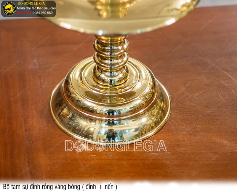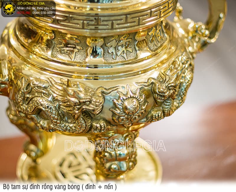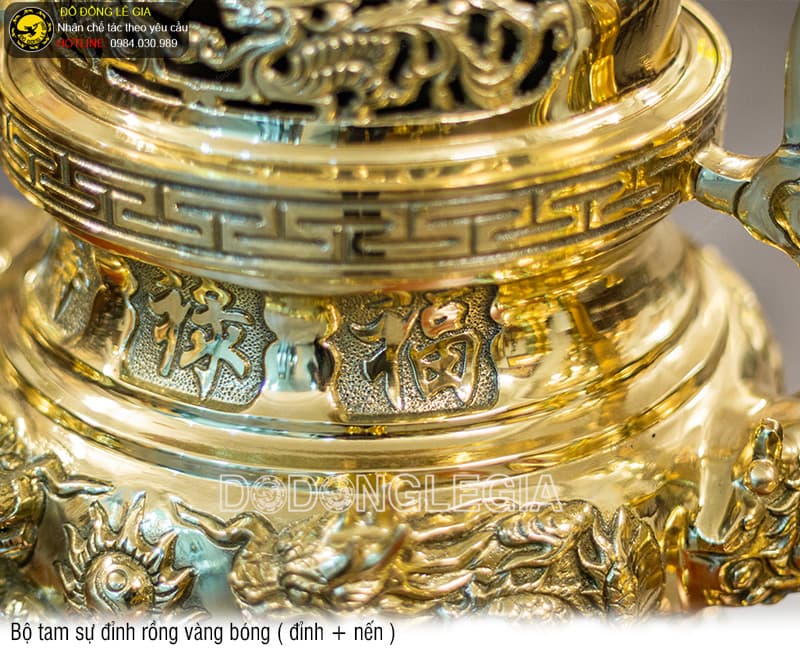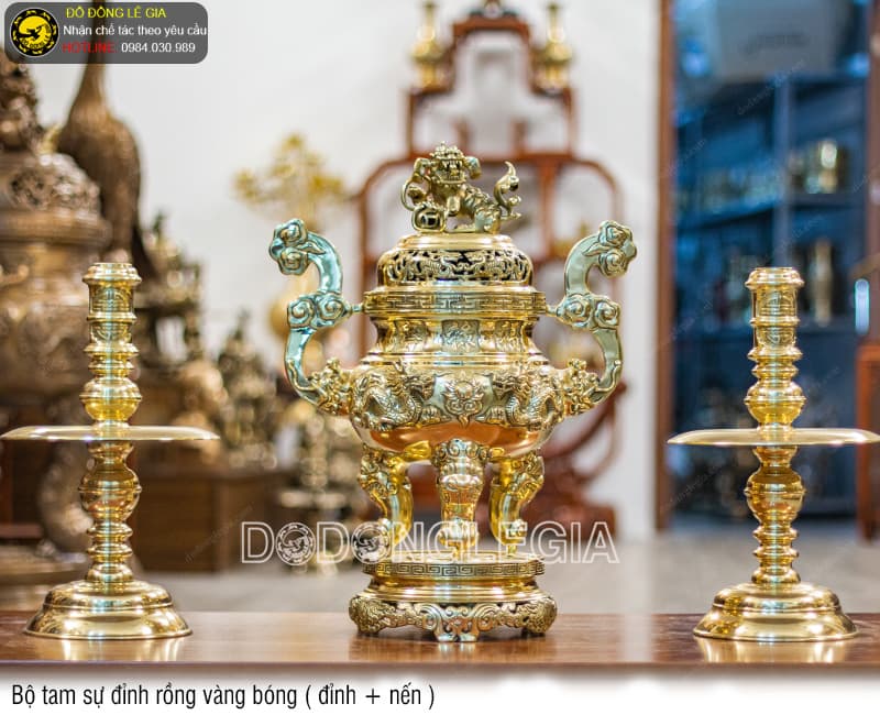 | Tên sản phẩm: | Bộ Tam Sự Đỉnh Rồng vàng bóng (Đỉnh và Nến) |