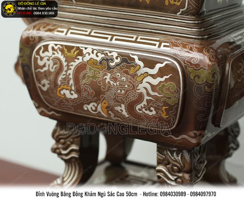 | Tên sản phẩm: | Đỉnh Vuông bằng đồng đỏ khảm ngũ sắc cao 50cm |