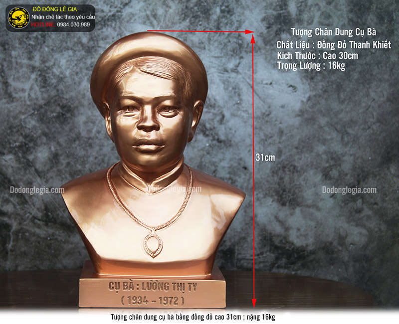 Các mẫu tượng chân dung tại Lê Gia được đúc hoàn toàn theo phương pháp truyền thống. Mọi quy trình đều trải qua sự kiểm duyệt nghiêm ngặt. 2 pho tượng được đúc với kích thước 31cm. Pho tượng được giữ nguyên màu đồng đỏ cực đẹp.