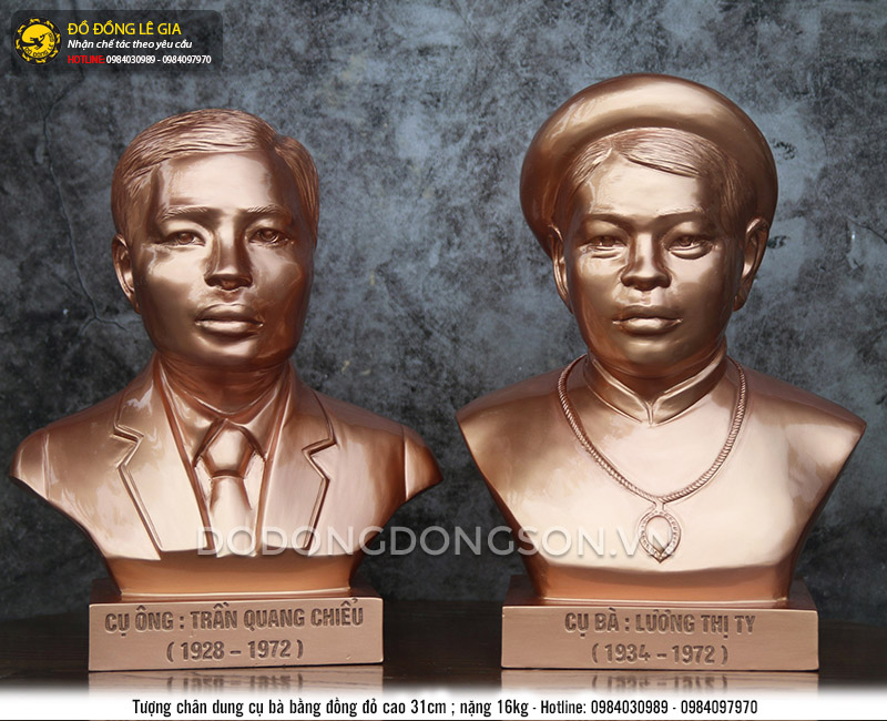 Cơ sở Đúc Đồng Lê Gia vừa qua đã tiến hành chế tác và đúc hoàn thiện tượng chân dung cụ bà cụ ông bằng đồng đỏ cao 31cm.