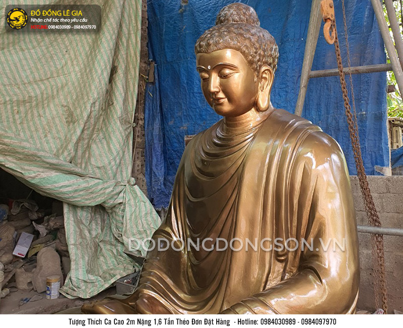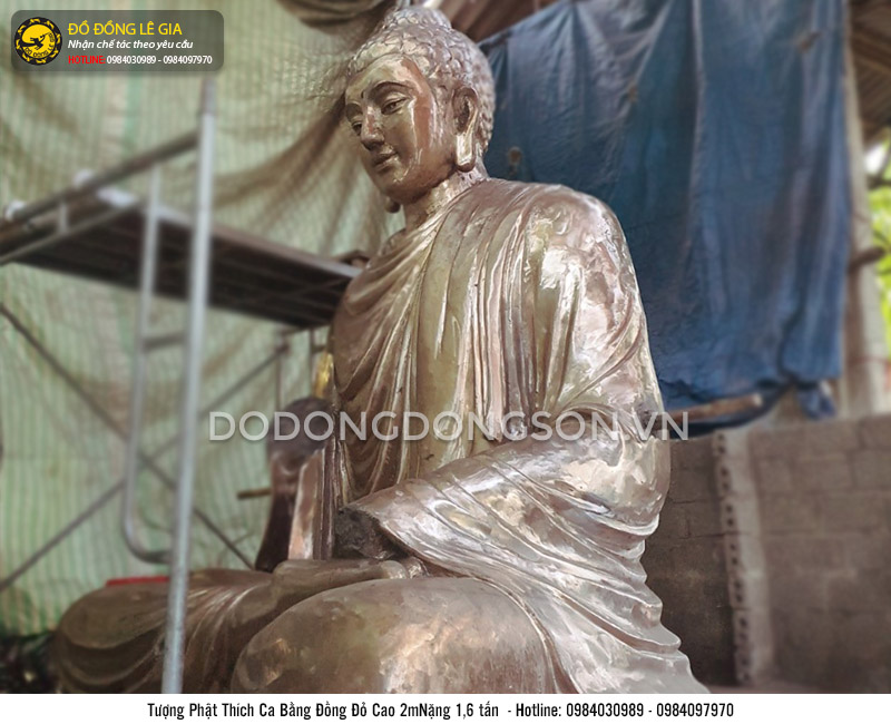 Bức tượng Phật Thích Ca được chế tác với kích thước lớn cao 2m, nặng 1.6 tấn. Các nghệ nhân đã làm từ cái tâm và cái tầm của mình để cho ra hình tượng ngài Phật từ bi, quảng đại. Với chất liệu đồng đỏ nguyên chất, tượng Phật có vẻ đẹp rực rỡ, sáng trong sang trọng, phù hợp đặt tại các khu chùa chiền,...