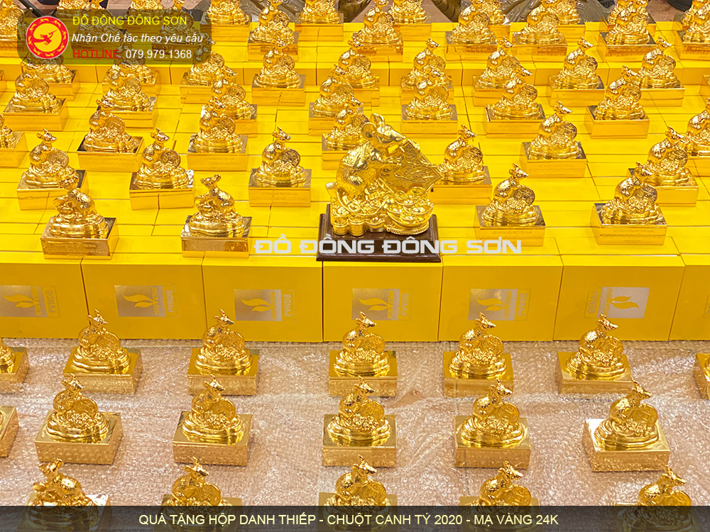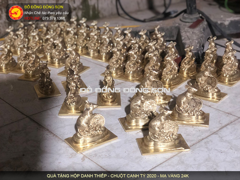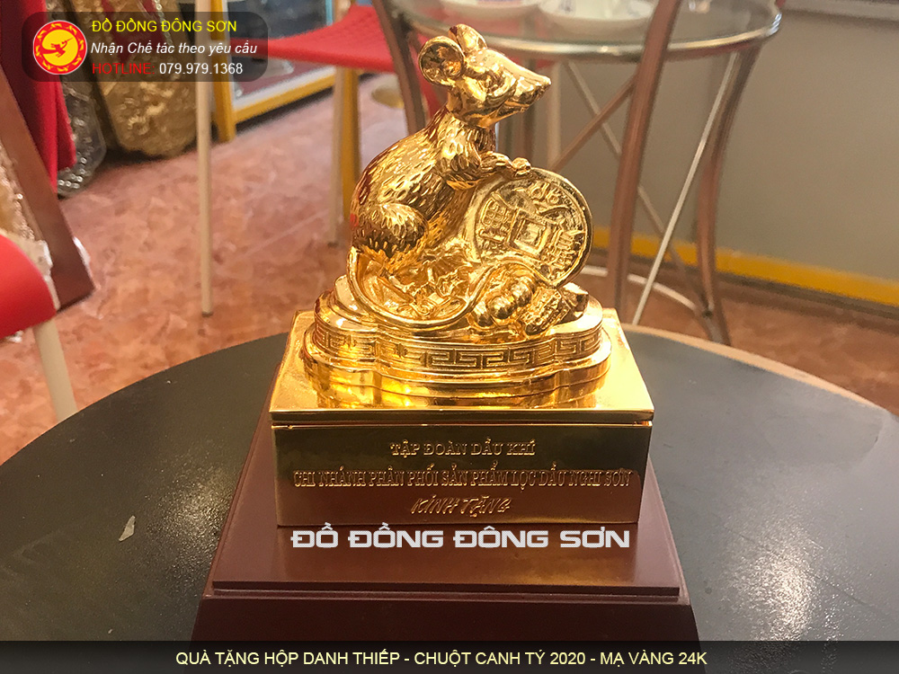 Hộp Đựng Danh Thiếp Linh Vật Canh Tý Mạ Vàng 24K được chế tác hoàn toàn thủ công, do bàn tay tài hoa của những người thợ lành nghề miệt mài sáng tạo. Đây là quà tặng cao cấp được Đồ Đồng Lê Gia chế tác độc quyền với số lượng 250 hộp cho Tập Đoàn Dầu Khí nhân dịp Tết Canh Tý 2020.