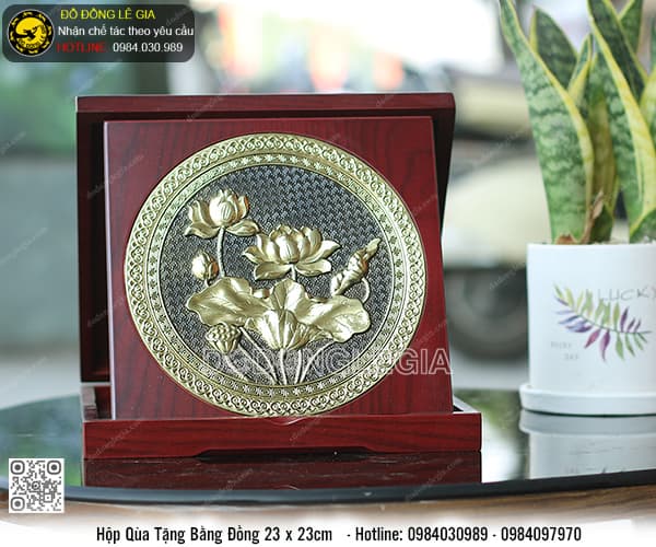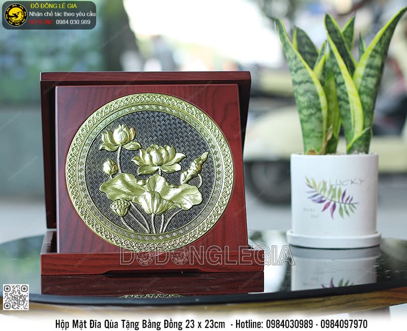 Tên của sản phẩm: Hộp Mặt Đĩa Hoa Sen bằng đồng 23 x 23cm