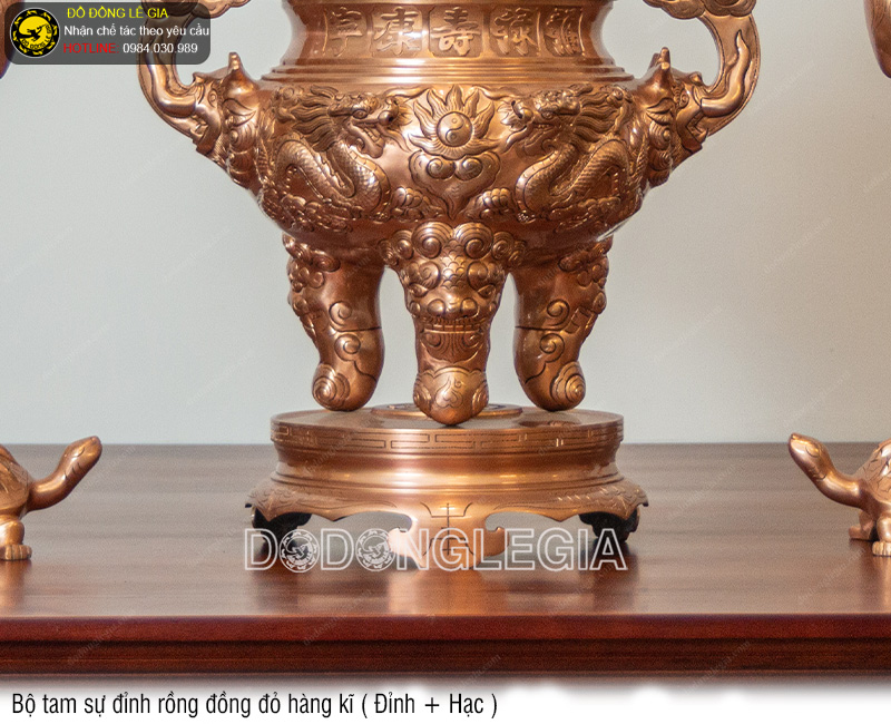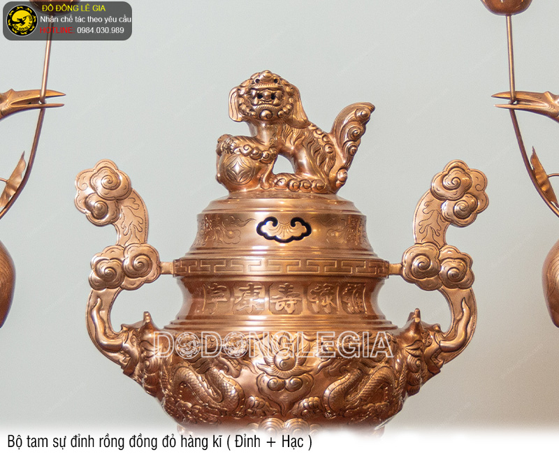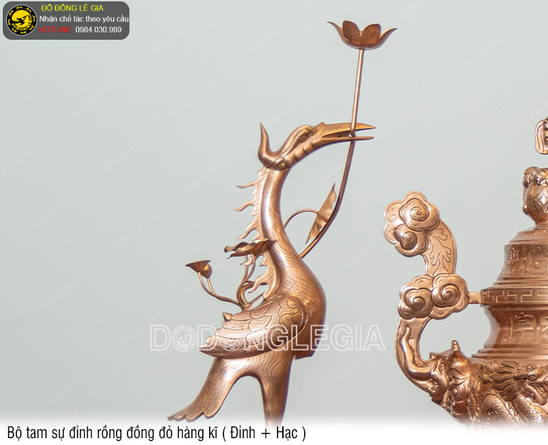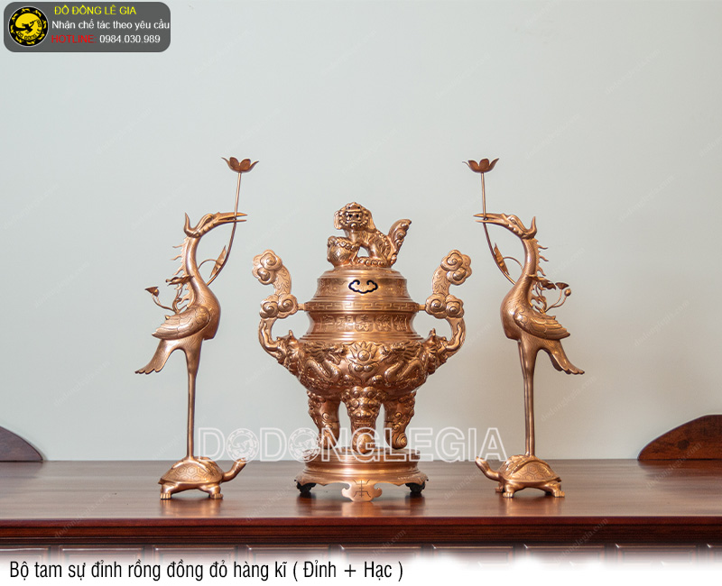 | Tên sản phẩm: | Bộ Tam Sự Đỉnh Rồng đồng đỏ hàng kĩ (Đỉnh và Hạc) |