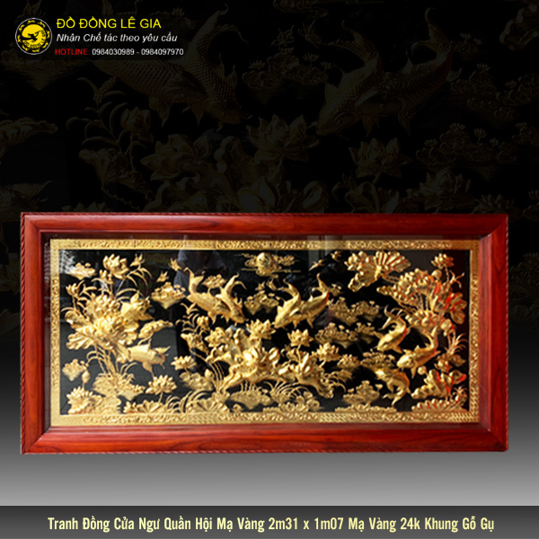 Tranh cửu ngư quần hội là dòng tranh đang được rất nhiều gia đình lựa chọn. Trong đó, tranh làm bằng đồng được yêu thích nhiều hơn cả. Những bức tranh đồng cao cấp mang vẻ đẹp tinh xảo, sinh động, toát lên sự sang trọng cho không gian treo tranh. Hơn nữa tranh cửu ngư quần hội bằng đồng còn có ưu điểm là độ bền vượt trội theo thời gian. Những bức tranh này có thể sử dụng nhiều năm, thậm chí cả chục năm mà vẫn giữ nguyên vẻ đẹp như lúc ban đầu. Để tăng thêm tính thẩm mỹ, thể hiện đẳng cấp, độ chịu chơi của mình, nhiều người còn mạ vàng 24k lên toàn bộ các hoạ tiết trong tranh.