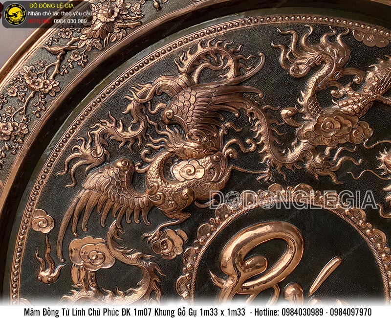 Sự kết hợp với Tứ Linh: Long – Lân – Quy – Phụng càng làm tăng giá trị tâm linh và biểu trưng phong thủy cho mâm đồng.