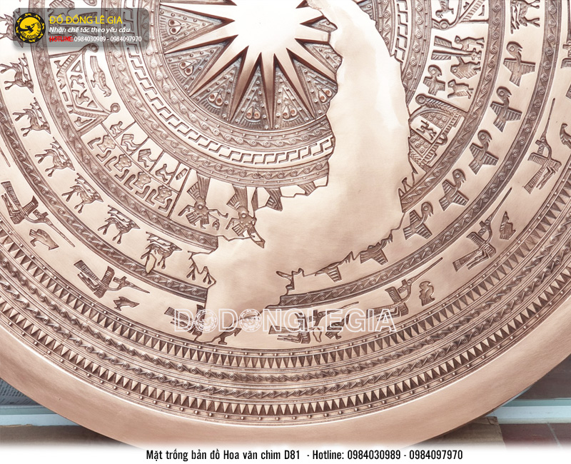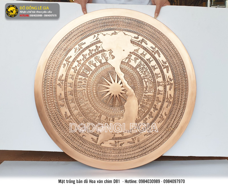 | Tên sản phẩm: | Mặt trống đồng bản đồ Việt Nam mẫu HVC D81 |