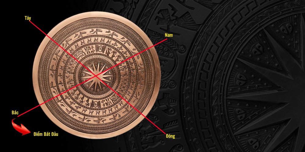 Để treo mặt trống đồng đúng hướng, ta phải hiểu được cách xác định phương hướng dựa trên những hoa văn trên mặt trống.