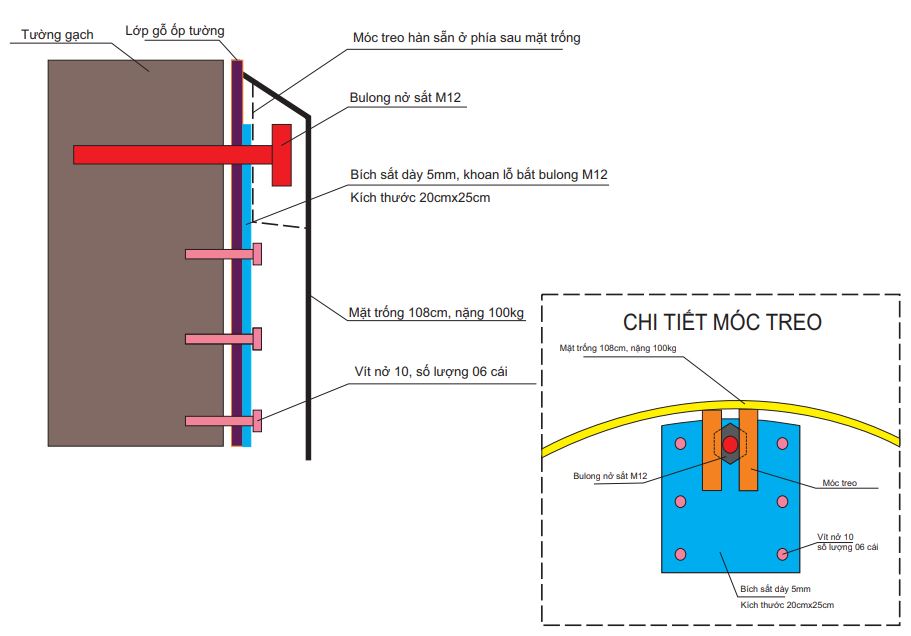 Mặt trống khá nặng lại được treo trên vách gỗ nên được Lê Gia gia cố kĩ lưỡng