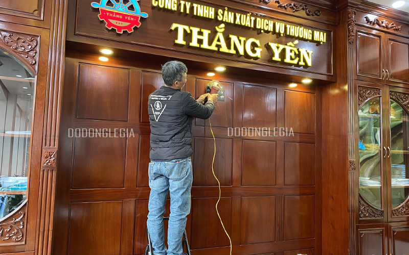 Mẫu mặt trống này được đúc đặc từ đồng đỏ do vậy có trọng lượng rất lớn. Để đảm bảo an toàn khi treo cho quý khách, Lê Gia đã cẩn thận lên phương án gia cố vít mặt sau trống trước khi tiến hành treo.