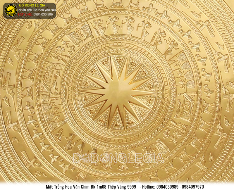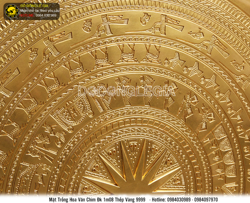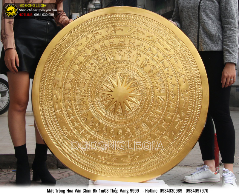 Mặt trống đồng là một trong những sản phẩm phong thủy sang trọng được các sếp, nhà quan chức dân rất ưa thích lựa chọn để trưng bày trong không gian. Trên thị trường hiện nay có rất nhiều cửa hàng phân phối các sản phẩm về trống đồng và mức giá cũng rất vô cùng. Tuy nhiên, để mua được sản phẩm thực sự chuẩn và hài lòng cả sau khi mua thì không phải ai cũng biết cách phân biệt. Cùng Lê Gia tham khảo mẫu mặt trống đồng hoa văn chìm đk 108 cm được dát vàng 9999 và cách để chọn mặt trống sao cho ưng ý nhất nhé.