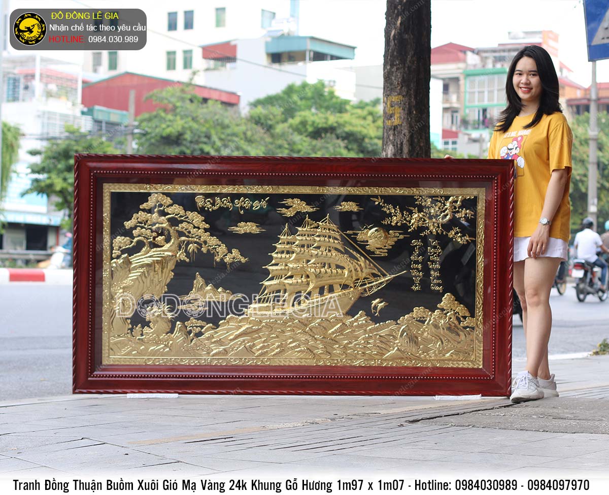 Tranh đồng "Thuận Buồm Xuôi Gió" là biểu tượng phong thủy cho mong muốn công việc làm ăn phát đạt, hanh thông. Con thuyền chở tài lộc vươn mình ra biển khơi, biểu trưng cho khát vọng của người dẫn đầu.