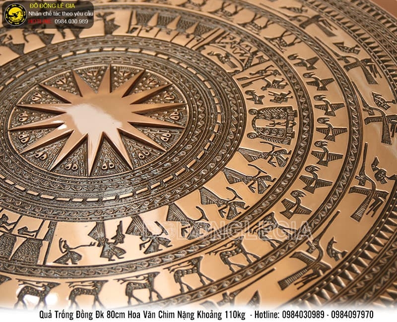 Quả trống đồng hoa văn chìm ĐK 80cm nặng 110kg không chỉ là một tác phẩm nghệ thuật mà còn là minh chứng sống động cho tinh thần Việt – truyền thống, sâu sắc và giàu bản sắc. Lê Gia hân hạnh đồng hành cùng quý khách trong hành trình gìn giữ và lan tỏa giá trị văn hóa dân tộc.
