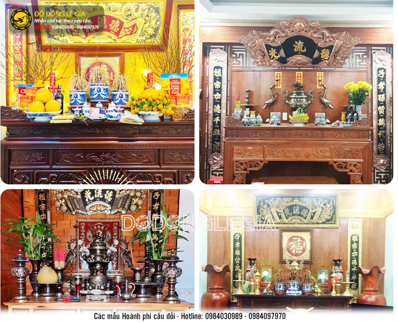 Một trong những vật phẩm không thể thiếu trong đình chùa, miếu đền, gian thờ gia tiên chính là bộ Hoành Phi Câu Đối. Đây là một dạng tranh chữ, chất liệu chế tác thường là gỗ hoặc đồng cùng với những hoa văn. Vì sao sản phẩm bằng đồng được nhiều gia đình ưa chuộng đến như vậy? Địa chỉ bán bộ Hoành Phi Câu Đối đẹp, uy tín ở đâu? Mời các bạn cũng tham khảo bài viết dưới đây của đồ đồng Lê Gia.
