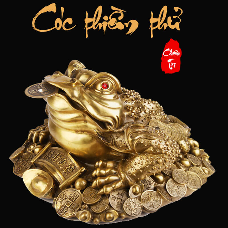 Tượng Cóc Thiềm Thừ thường được khắc họa với hình ảnh linh vật cóc đang ngậm tiền vàng như một biểu tượng để cầu tài lộc. Đây là một linh vật có ý nghĩa phong thuỷ rất lớn, giúp đem đến sự may mắn, phát tài và chiêu tài hút lộc cho gia chủ.