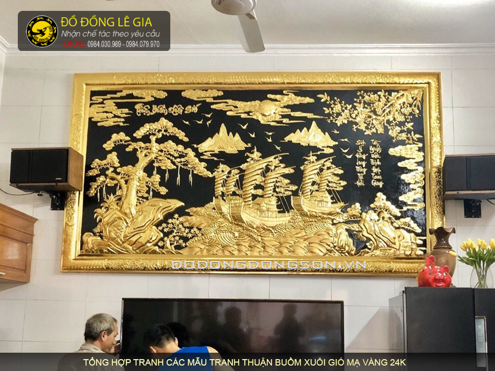 Dưới đây Lê Gia xin giới thiệu tới quý khách các mẫu tranh đồng Thuận buồm xuôi gió mạ vàng 24k đẹp nhất: