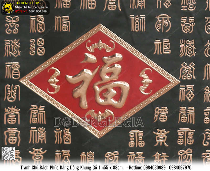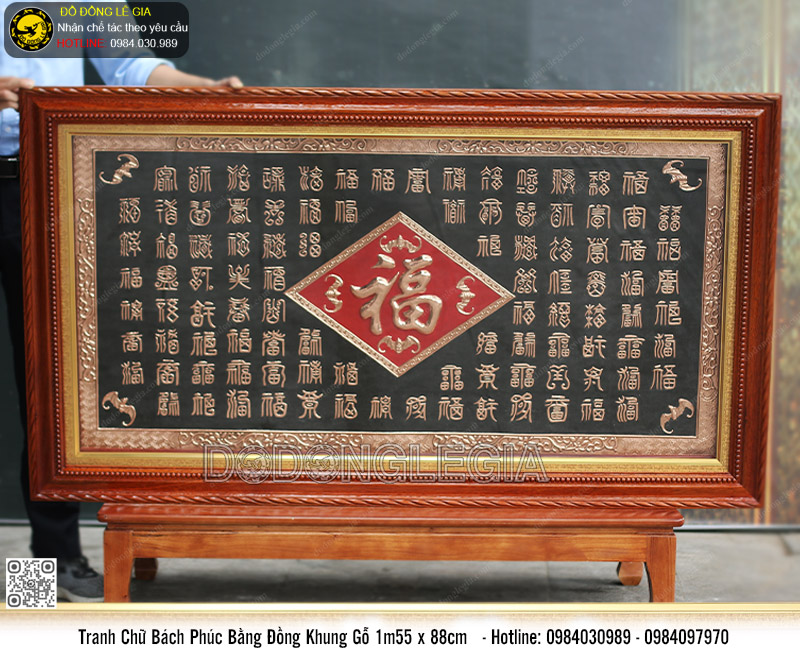 • Tên sản phẩm: Tranh Bách Phúc bằng đồng đỏ khung gỗ 1m55 x 88cm