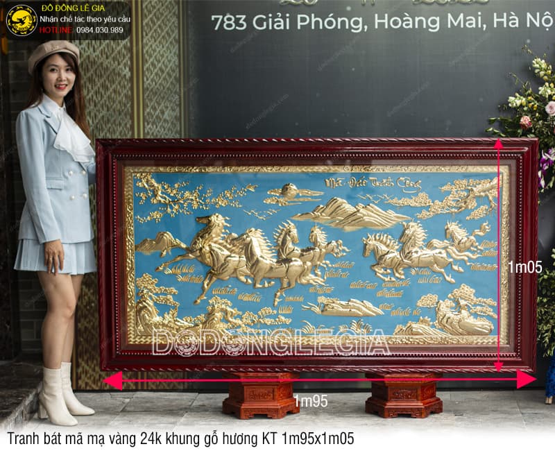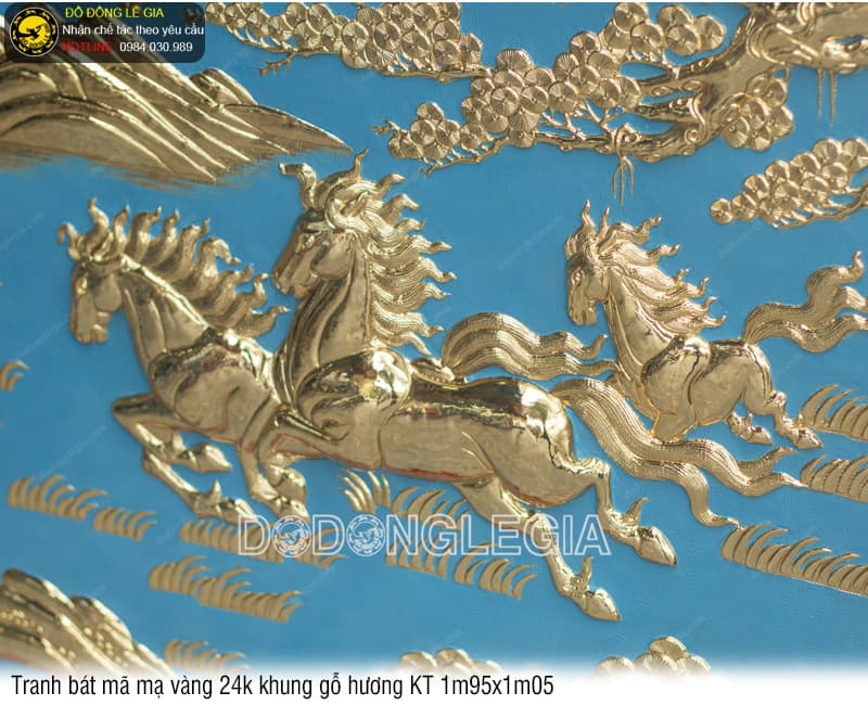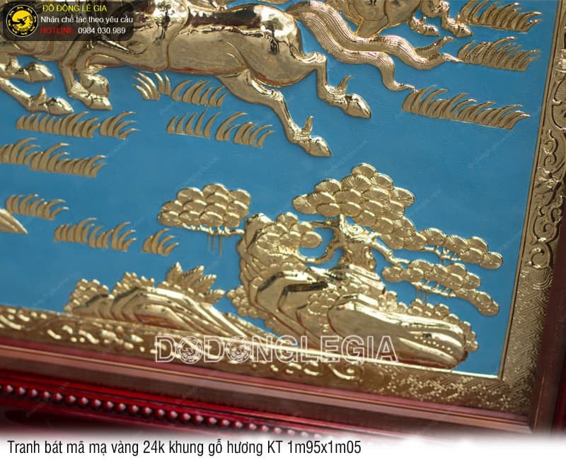 | Tên sản phẩm: | Tranh bát mã mạ vàng 24k khung gỗ hương |