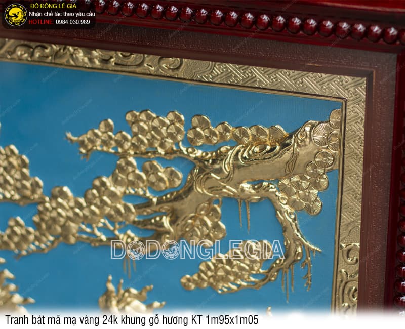 | Chất liệu: | Đồng vàng liền tấm dày 8 rem nhập khẩu, khung gỗ hương |